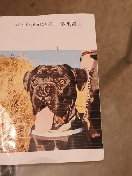 I am really please with the outcome.. I did one with another company, I wasnt happy with the colours at all.. your company got it right, so I’ve ordered another one for my other dog I had..