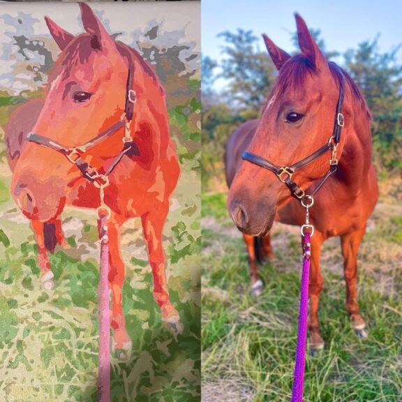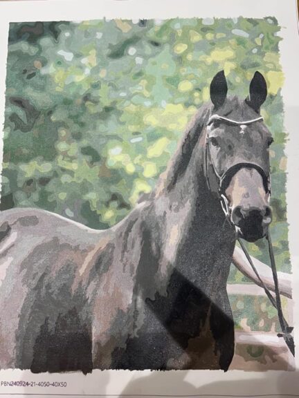 I bought this as a birthday present to myself to hang in the living room of my new flat. I’m very pleased with how it’s come out! Some of the colours were a bit more abstract than the photo so I freestyled a bit, but this required very little actual talent. Some of the colours were a bit abstract (some of the painting is purple, whereas my horse is actually ginger) but it looks really good all together – trust the process! Make sure you use a very clear photo for the best result possible (my example attached). Great fun to do and I would definitely buy again.