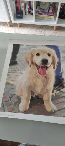 A dear friend of mine, her dog passed away and she’s devastated. So I thought I’d ask her for a photo so I could do a painting of him. This is the result, perfect.The items arrived early, in perfect condition and well wrapped.It’s great fun, everyone should try this.