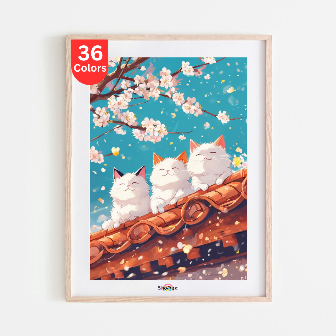 Charming Cats on Clay Roof Paint by Numbers Kits Price range: 17,50 $ through 30,00 $
