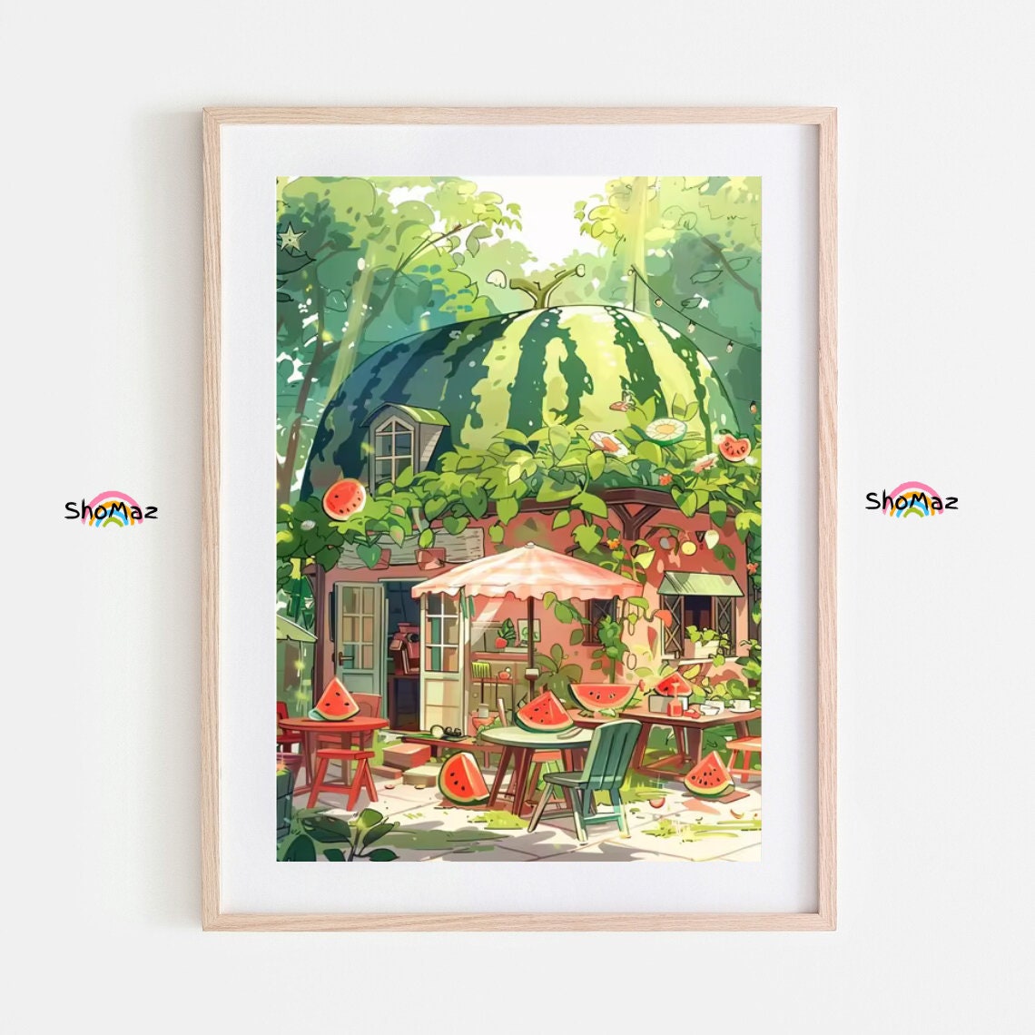Charming Watermelon-Themed Cottage Paint by Numbers – Outdoor Garden Retreat