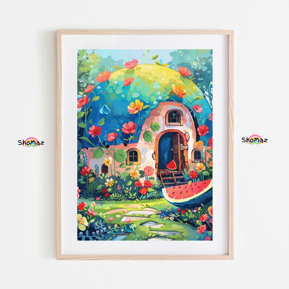 Fairy Tale Watermelon Cottage Paint by Numbers Kit – Vibrant Garden Escape