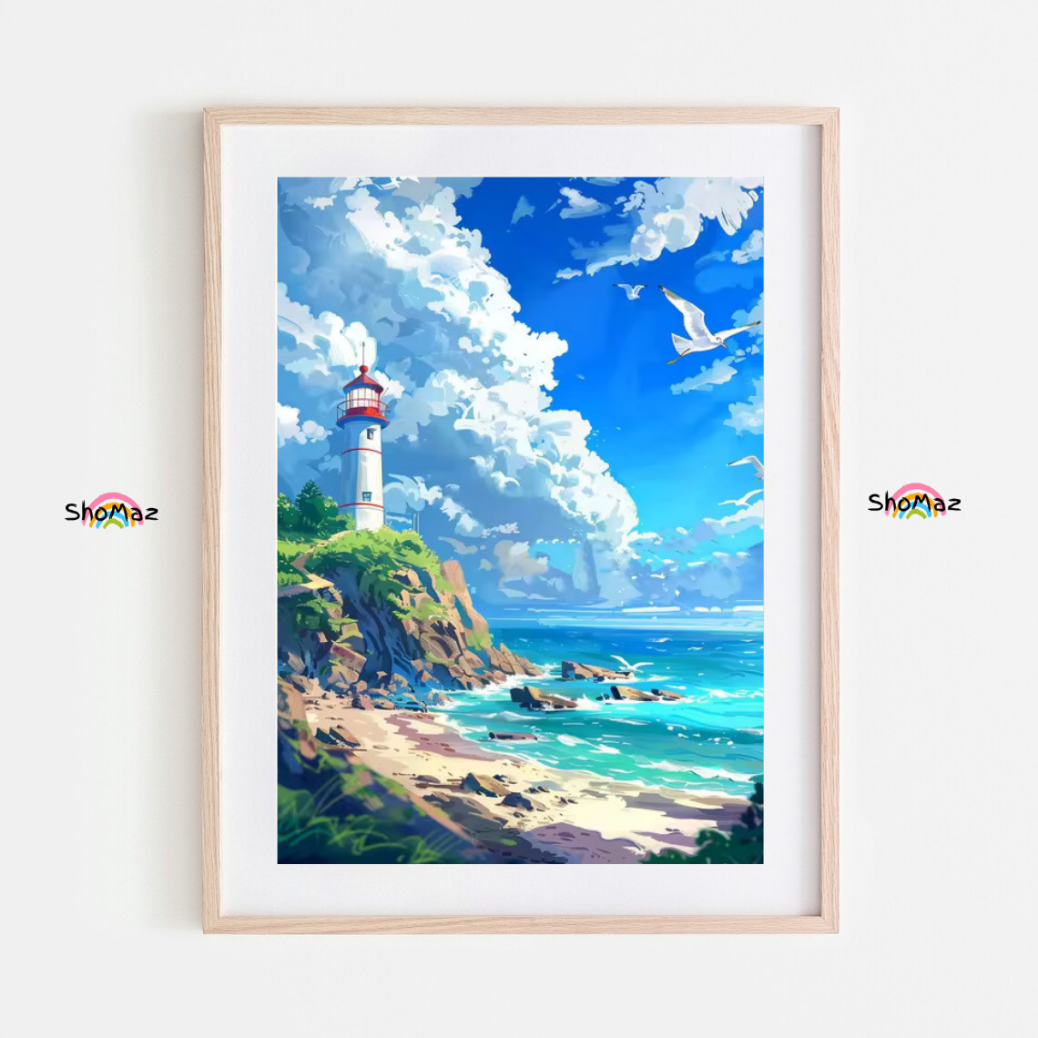 Majestic Lighthouse by the Sea – Coastal Paint by Numbers Kit