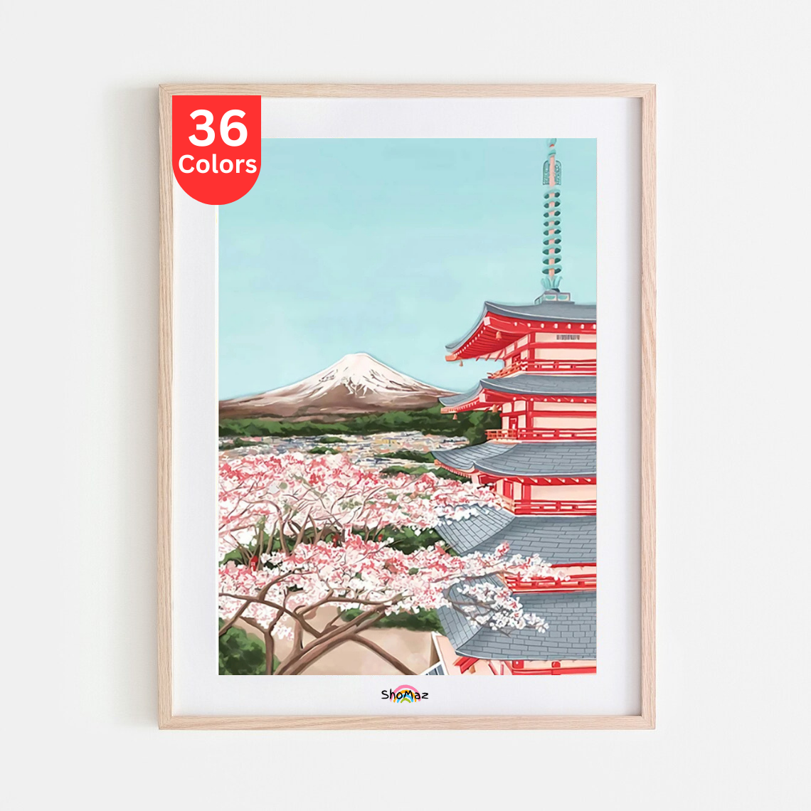Mt. Fuji and Cherry Blossoms | Paint by Numbers Kit | DIY Japanese Landscape Art | Unique Gift Idea