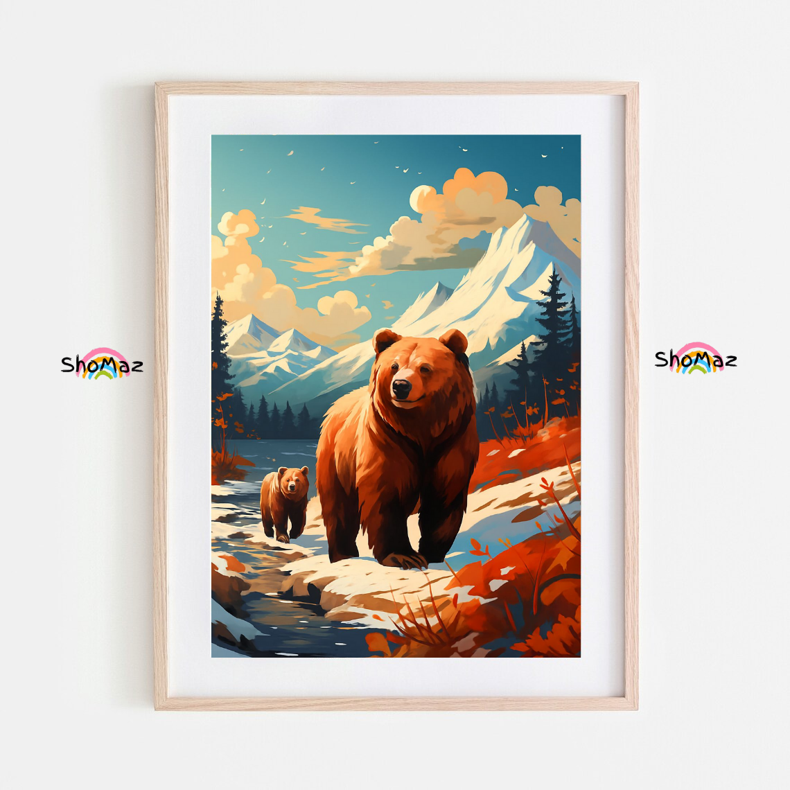 Paint by Numbers Kits Grizzly Bears Walking Along Snowy Path In Rugged Wilderness