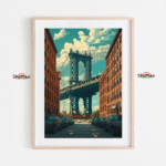 Urban Scene Featuring Manhattan Bridge Amidst Red Brick Buildings